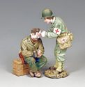 Pete worked in conjunction with Andy C. Neilson of King & Country to create a small, special set of figures that would pay tribute to Shannon and the unique role she played in the world of toy soldiers. When Pete told Andy of Shannon's earlier vocation and training as a registered nurse in several Veterans' hospitals in the U.S. Andy suggested a figure (or figures) relating to a 'nursing theme' ... Further suggestions followed before both men agreed that an original 2-figure set could show a U.S. Army WW2 Nurse in battlefield fatigues tending a wounded G.I.