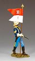 A veteran 10th NCO carries his pistol in one hand and a troop guidon in the other.