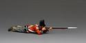 Lying on the ground in front of the ranks of his kneeling and standing comrades this ‘Tommy Atkins’ takes careful aim.