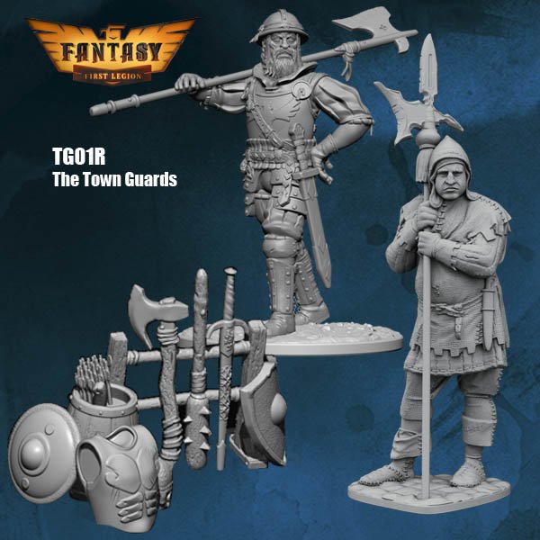 The figures are Heroic Scale 28mm being on the larger end of what is considered 28mm. They would be more accurately described as 32mm (sole to eyes) for humans. Goblins, Orcs, etc. are purposely done in a size and style of First Legion's own, with the Orcs in particular being large brutish fellows at about 38mm tall to the top of the heads. These figures are compatible in size with figures from companies such as Games Workshop and Reaper to name just few.