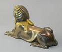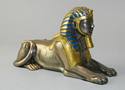 This cold cast Resin depiction of a Sphinx t is done in a bronze and painted finish.